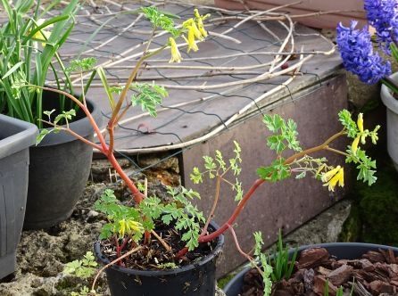 I was given this scrap of a plant in the teeniest possible pot at a plant swap last November. It has not only survived winter outside but grown and produced some pretty little tubular flowers and soft green foliage with reddish stems. I have just found it hiding under apile of wisteria leaves so have rewarded it with a bigger pot and fresh compost.