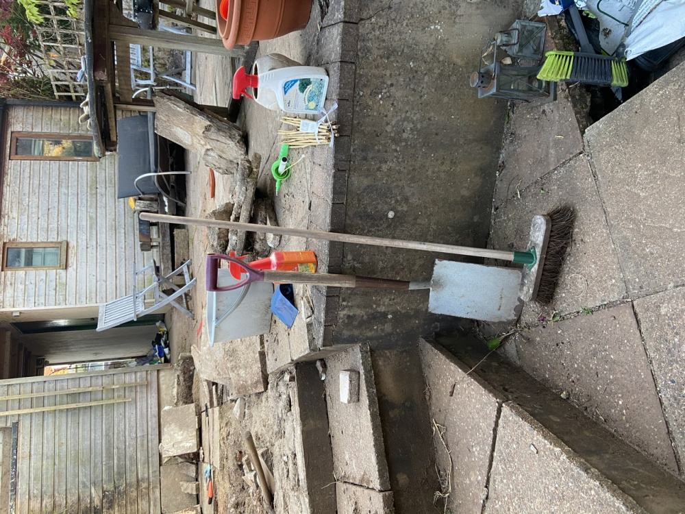 The patio tiles started to rise and after lifting a few up realised the patio was also riddled with thick bamboo shoots. I’ve dug up the patio bamboo and carefully put the slabs back however there were a few sections where it went too deep and I’ve now got a big hole in my patio.