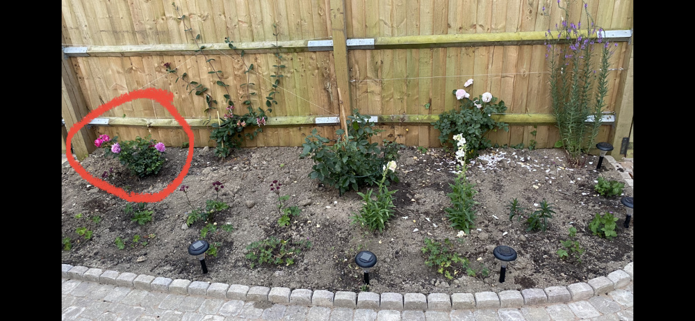 What I need to add now is something that will give me interest all year round - so was thinking evergreen shrubs? I wanted peoples advice on this. I was thinking I may need to remove the circled rose and put it elsewhere otherwise I think there is too little room for shrubs otherwise. Maybe there are too many perennials and I need to remove a few more first?